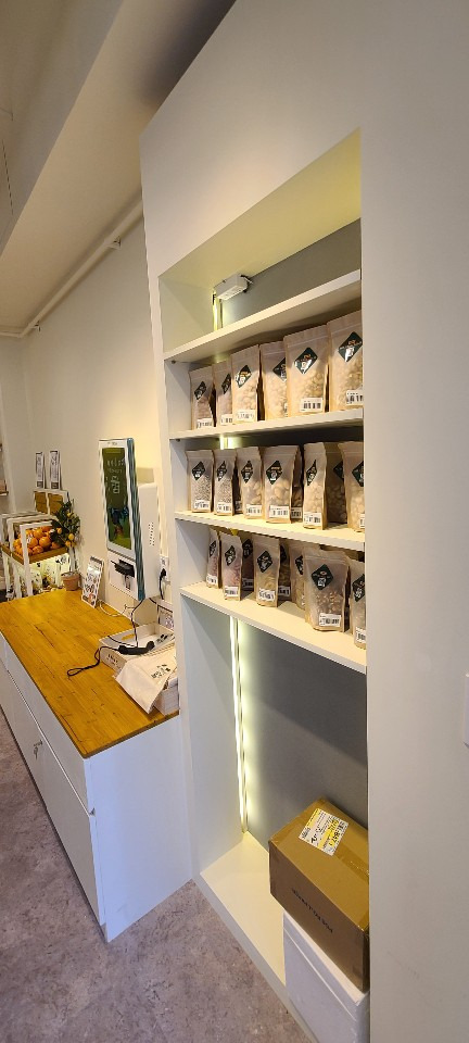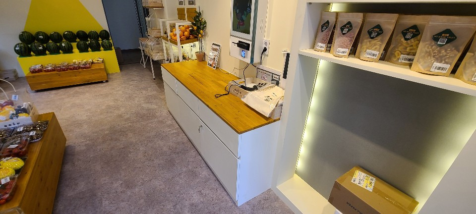 서울 목동 과일가게 인테리어 8평 시공현장 홍보영상 홈코디 분석 내용 무인상점으로 키오스크 설치 벽체는 도장 과일진열대는 각파이프로 뼈대을 제작후 삼나무 집성목으로 바구니 제작 진열대는 LED조명 바닥은 데코타일시공 외부는 갈바시공 창문은 유압쇼바을 달아서 두번 접히게 제작 가마찌도어 제작 빠른시공과 저렴한 가격 리뷰 0 포토 리뷰만 보기 목록