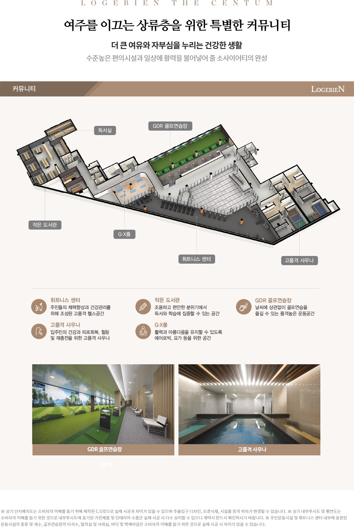 약 5천 평 규모의 공원형 조경은 단지 한가운데 넓은 녹지와 산책 동선을 만들어 일상의 휴식을 돕습니다. 피트니스, 실내골프연습장, 독서실, 작은도서관, 카페테리아 등 커뮤니티 구성이 고르게 갖춰져 있어 세대별 생활 리듬에 맞춘 이용이 가능합니다. 지상 보행 안전과 동선 분리는 아이가 있는 가정에 특히 유리한 요소입니다. 여주역 로제비앙 더센텀의 ‘살기 편한 디테일’이 체감되는 지점입니다.